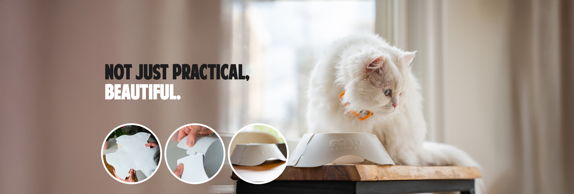 "Experience the revolution in pet products with Fold4Friends – where functionality meets flair. Our range, meticulously crafted from polypropylene, ensures a feather-light solution for your pets. The genius lies in the simplicity of folding – effortlessly transform a flat sheet into a vibrant, functional pet accessory."